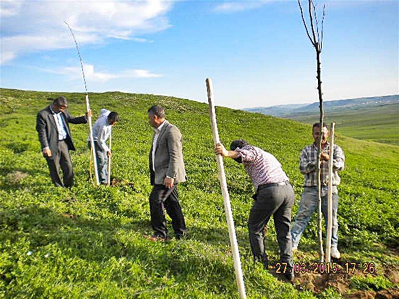 Ayrıca Mera alanının uygun yerlerine, hayvanlara gölgelik olması ve dinlenmeleri için, ağaç fidanı dikildi.