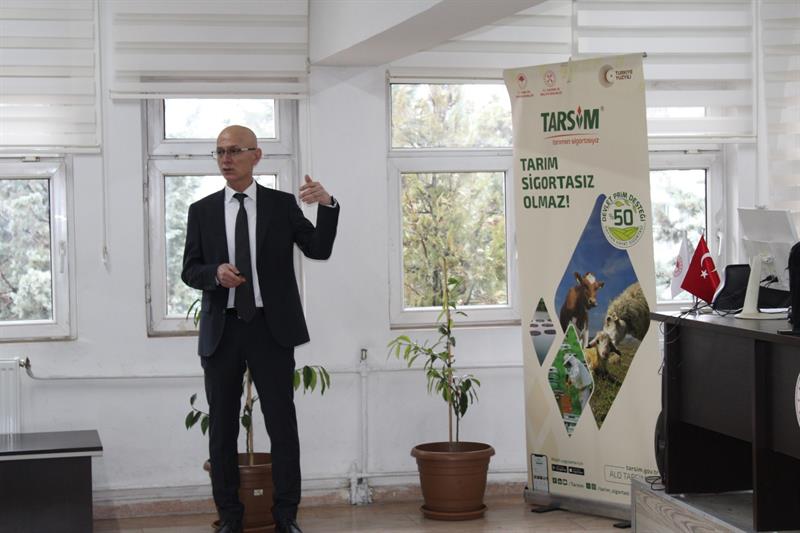 Tarım Sigortaları Kanunu ile amaçlanan tarım sigortalarının tanıtılması ve yaygınlaştırılmasının sağlanması ile üreticilerin doğal afetlerden ve diğer oluşabilecek risklerden korunması amacıyla, İl Müdürlüğümüz ile Tarsim Bölge Müdürlüğü işbirliğiyle İlimiz merkez ve 5 ilçesinde 5 gün devam edecek TARSİM toplantılarının ilk günü İl Müdürlüğümüzde STK temsilci ve İlimiz tarım sektörü paydaşlarıyla geniş katılımlı bir toplantı düzenlendi. Toplantıda Bölge Müdür Yardımcısı Olcay BATIR ile Tarsim uzmanı Dr. Ahmet DİNÇ birer sunum yaptı. Sunumda Zirai don,,kuraklık, Hayvancılık, Arıcılık ve Su ürünleri hasar durumları ve poliçesler hakkında bilgiler verdiler.